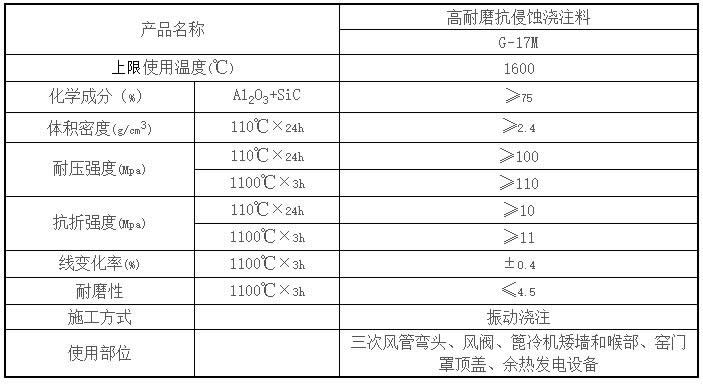 【產品名稱】:高耐磨抗侵蝕澆注料 G-17M