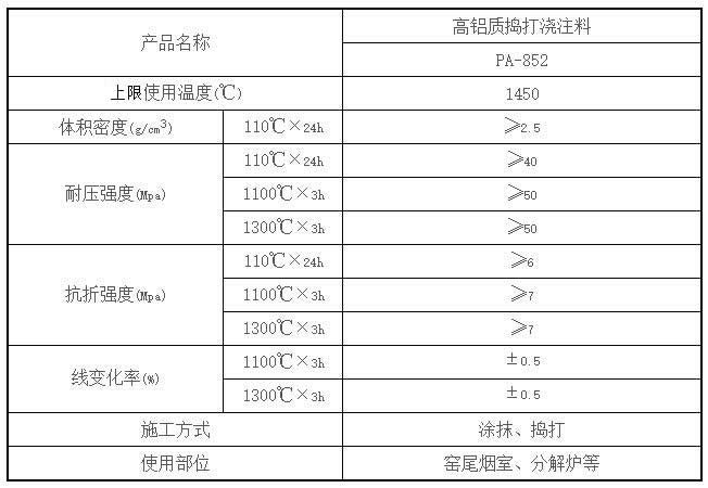 【產品名稱】:高鋁質搗打澆注料PA-852