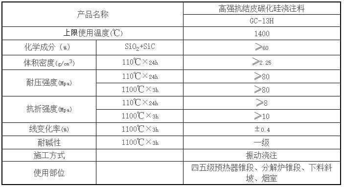 【產品名稱】:高強抗結皮碳化硅澆注料 GC-13H