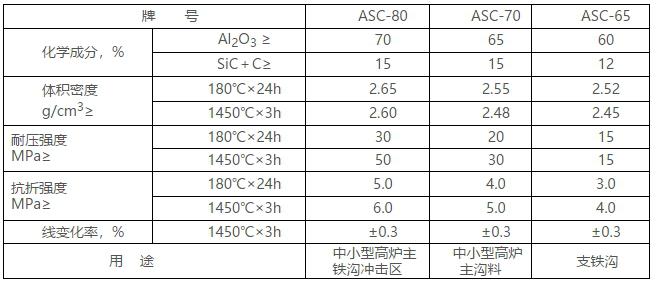 該鐵溝搗打料主要用于中小型鐵溝的主溝、支溝、渣溝和殘鐵溝。免烘烤鐵溝搗打料施工方便、快捷,無需烘烤即可使用,且使用壽命長,不修補一次通鐵量可達3~5萬噸。