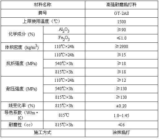 1)采用復合結合劑,其結合狀態以水化結合為主,凝聚結合和化學結合為輔助結合方式,使襯里材料內部結合更為緊密,具有較強的韌性和耐磨性,能夠抵抗強烈含塵煙氣、催化劑、結焦顆粒的沖刷。